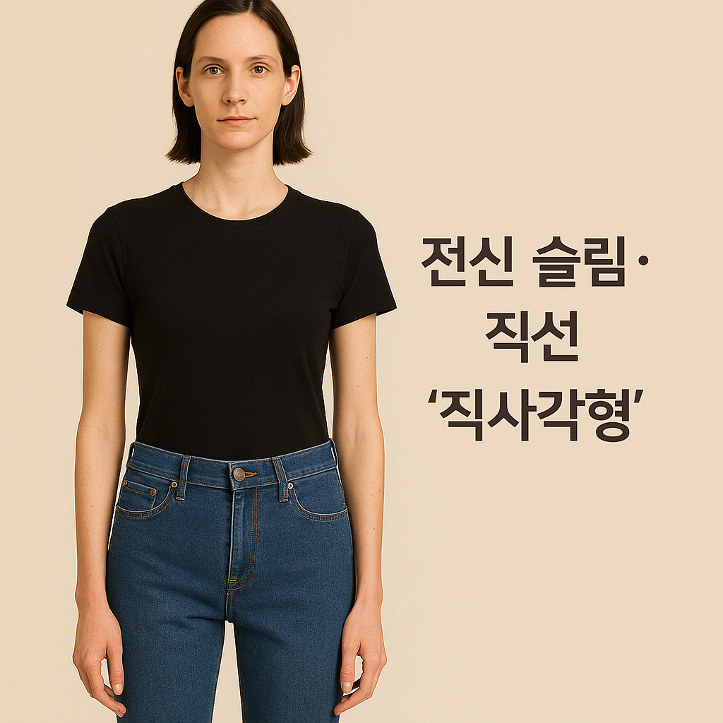 | 상체 길고 다리 짧음 | 하이 스트레이트 | 하이 | 다크 솔리드 | 크롭 1–2cm |