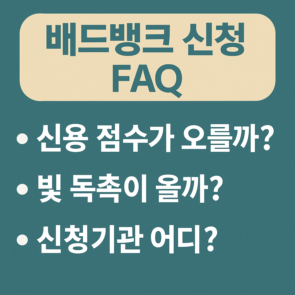 👉 따라서 배드뱅크는 ‘단기적으로 점수를 올려주는 마법의 제도’는 아니지만, 중장기적으로 신용을 회복하는 가장 현실적인 방법입니다.