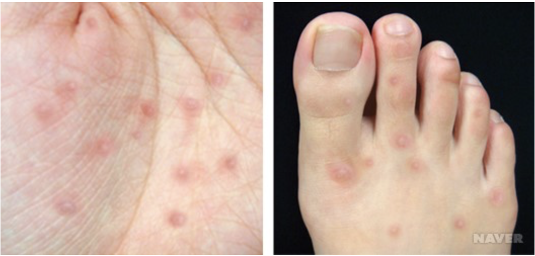 - 손바닥, 발바닥에 수포성 발진