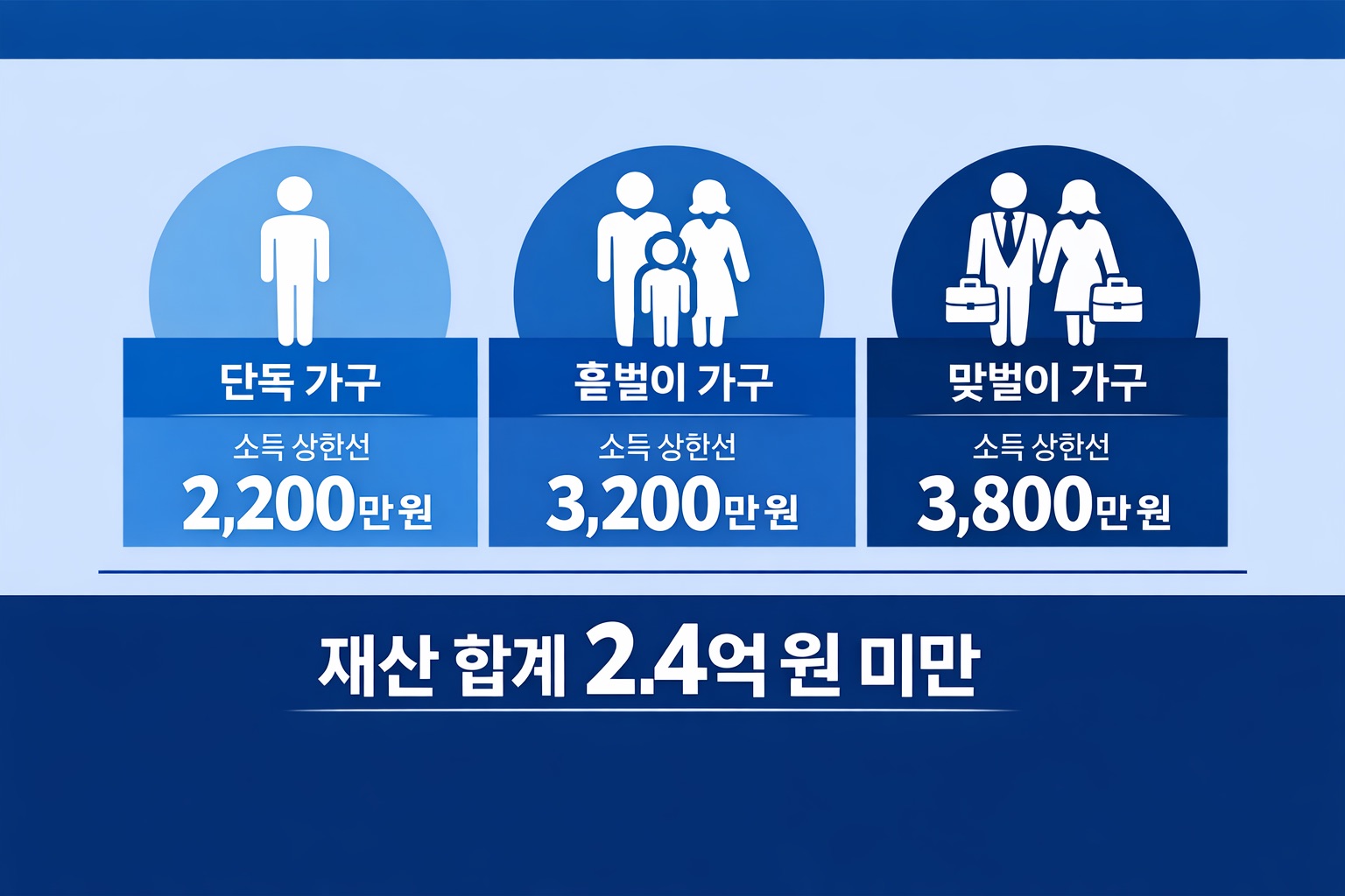 신청 자격의 핵심은 크게 두 가지, '가구 구성'과 '소득/재산'입니다. 2025년 귀속분 기준으로 소득 요건은 다음과 같습니다.
