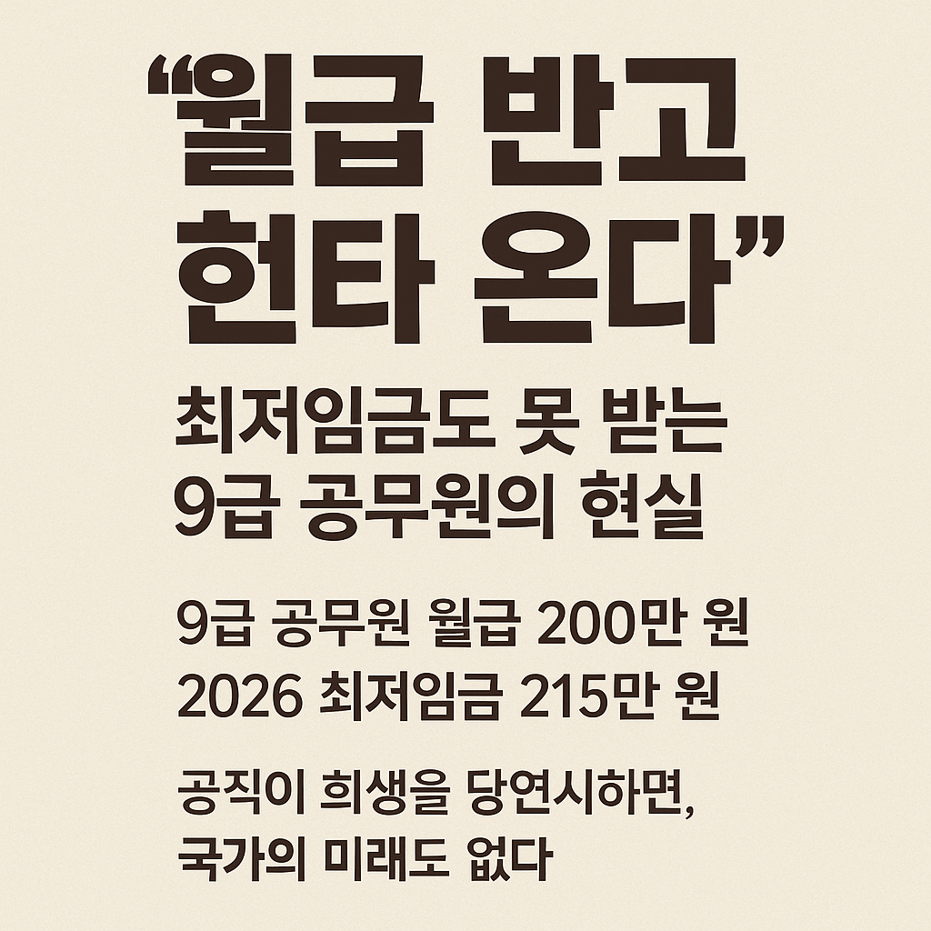 최근 확정된 2026년도 최저임금(월 약 215만 원)이 신규 9급 공무원 기본급(약 200만 원)을 넘어섰다는 소식은 많은 이들에게 충격을 안겼습니다.