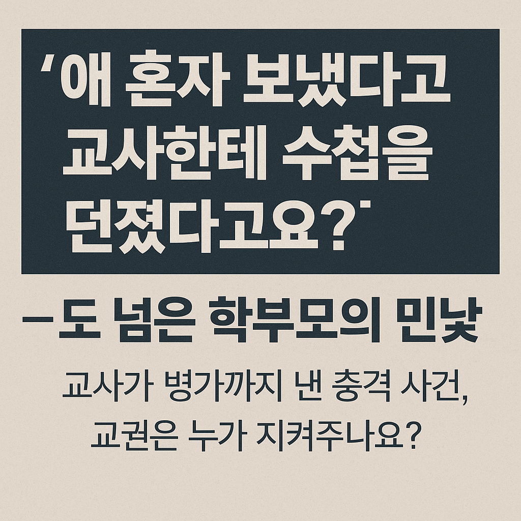 이 사건은 단순한 갈등을 넘어서 ‘교권 침해’라는 심각한 문제를 드러냅니다. 교사와 학부모, 그리고 학생의 건강한 관계가 어떻게 무너질 수 있는지를 단적으로 보여주는 사례이기도 합니다.